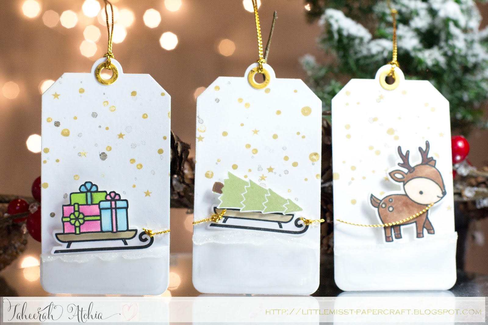 Your trio of tags is adorable! I'm in love with the reindeer pulling the sleds. Too cute!