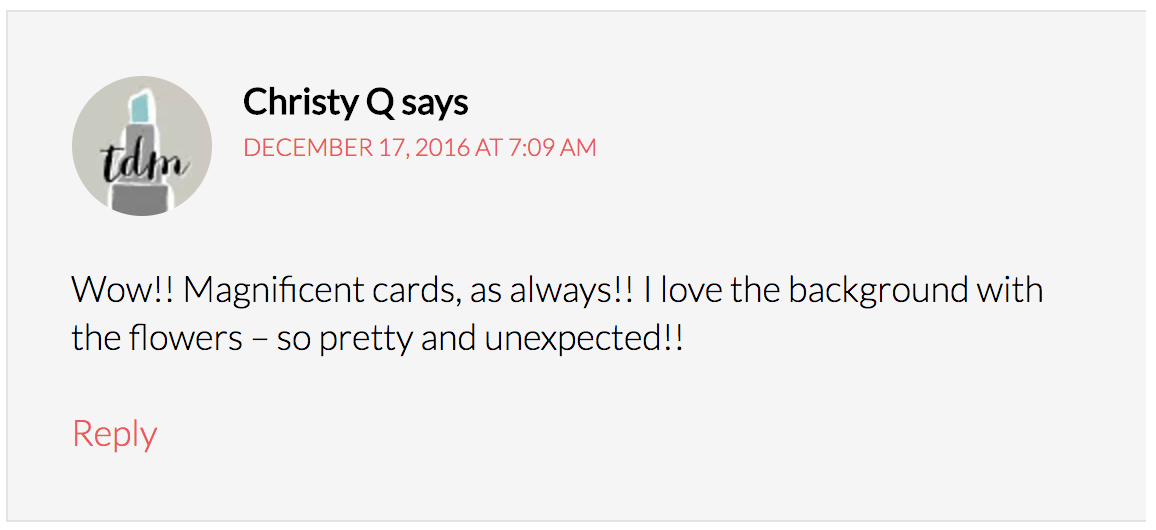 Congratulations to the winners!! And wow, I had to double-check this post two or three times to make sure that I read my name correctly – thanks so much!!! So excited as I love Reverse Confetti!!