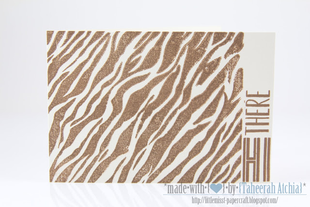 Hey everyone! Happy Friday! Today I’m bringing you a card I created for Gel-à-Tins. I really can’t put the Zebra Background stamp down! I keep reaching for it again and again! That’s love. 🙂 Today I decided to create a